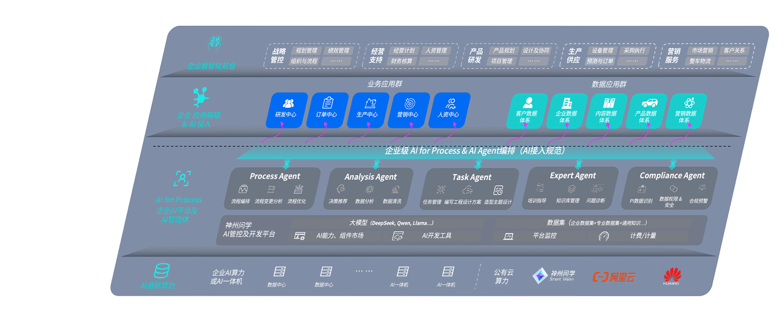 开元体育问学智车解决方案是一套基于AI技术的汽车行业智能化系统,,,覆盖从底层算力到顶层AI应用的全栈方案。。。方案由算力层、、模型层和应用层组成:算力层,,,,方案支持多种一体机配置,,,,具备云端灵活部署、、、、多云适配以及动态优化计算资源的能力;模型层,,开元体育问学平台版提供了企业级AI应用一站式构建与管理平台,,,,支持基于后训练强化技术的汽车企业专属模型的训练、、、评测和运营;应用层,,,开元体育问学DeepSeek版提供包括超级员工、、、、智能招采、、、、智能营销、、、智能客服、、、AI for BI等一系列解决方案,,可助力汽车行业实现数字化转型,,,让管理更智能、、响应更敏捷。。。